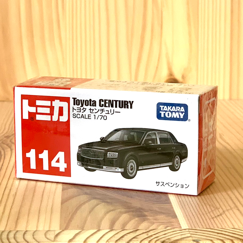 It's a 1/70 scale replica of the third generation Toyota Century in Kamui Eternal Black. It has working suspension.